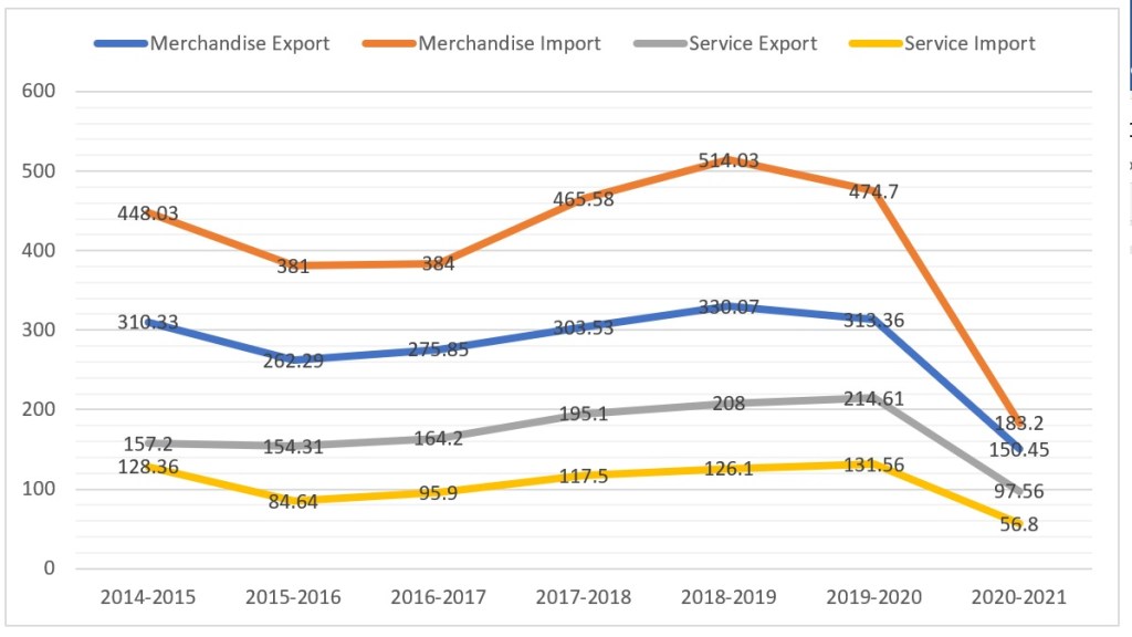 | Merchandise (USD Billions) | 448.03 | 381 | 384.36 | 465.58 | 514.03 | 474.70 |